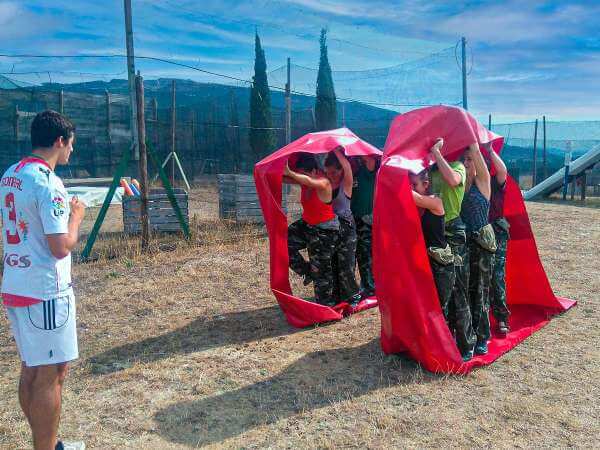 Para hacer la actividad os dejaremos buzo de camuflaje, peto y máscara, debajo podéis llevar pantalón fino y camiseta. Importante traer calzado cómodo, zapatillas suficiente. Si queréis traer una camiseta de recambio puede estar bien.